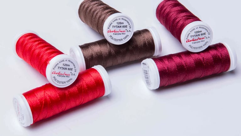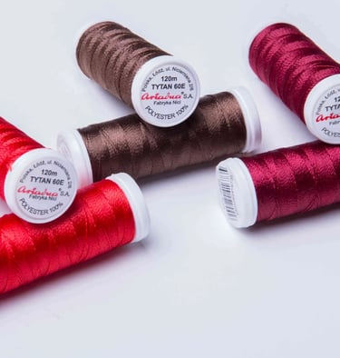 TYTAN. Šis iš 100 % ištisinio poliesterio pagamintas siūlas pasižymi išskirtinai dideliu tempiamuoju stiprumu, mažu pailgėjimu, stabilumu susisukimui, puikiu atsparumu trinčiai. Spalvos atsparios šviesai, skalbimui ir cheminiams veiksniams. Skirta automobilių ir baldų apmušalai, techniniai audiniai, batai, drabužiai, oda ir į odą panašūs gaminiai, rankinių gamyba.